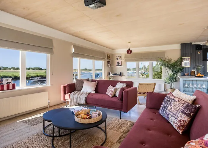 Gelegen in ca. 5 Gehminuten Entfernung vom Christchurch Quay, bietet die 2-Zimmer- Villa Stunning Waterfront, Wood Fired Hot Tub, Projector & Log Burner Christchurch einfachen Zugang zu verschiedenen Sehenswürdigkeiten in der Gegend. Die Villa in Christchurch liegt gleich neben dem Red House Museum and Gardens und verfügt über eine Terrasse mit Blick auf den Fluss.